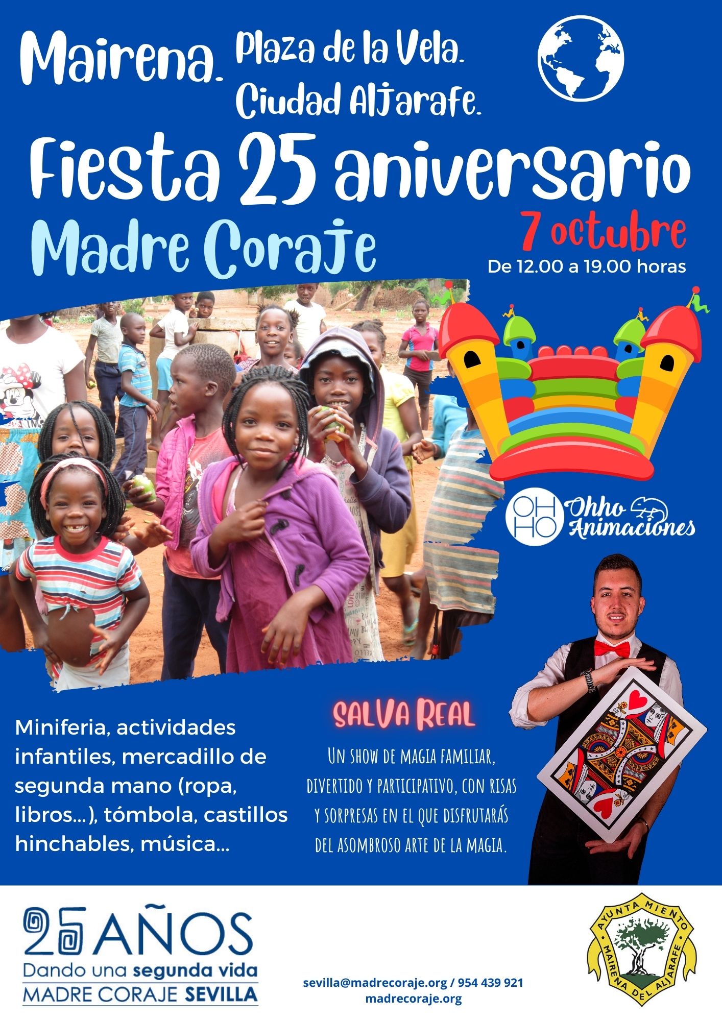 Con esta fiesta, que contó con el apoyo del Ayuntamiento de Mairena del Aljarafe y con la colaboración de Ohho Animaciones, la entidad social reunió a familias de la zona en un ambiente lúdico y divertido a la vez que celebró los 25 años que lleva Madre Coraje “Dando una segunda vida”.