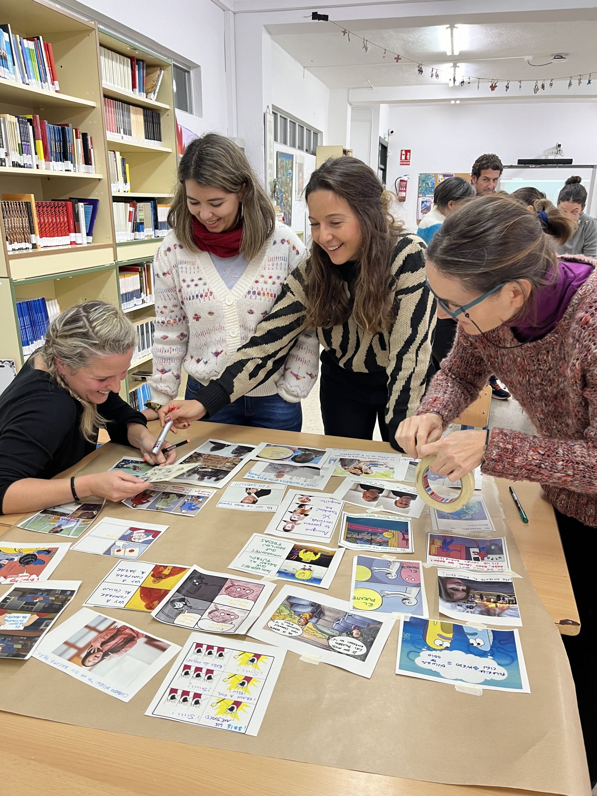 Entre las ideas surgidas está la creación de un equipo de ‘Detectives de bulos’, estimulando en pensamiento crítico y trabajando con el alumnado en la identificación de noticias falsas, la creación y representación de una pieza teatral para sensibilizar sobre las consecuencias del discurso de odio entre la juventud o la celebración de una ‘Biblioteca Humana’ para despertar la empatía hacia personas y colectivos que son víctimas de discurso de odio. Estas acciones se pondrán en marcha junto a las alumnas y alumnos de Secundaria en los próximos meses, contando para ello con el acompañamiento del equipo de Madre Coraje.