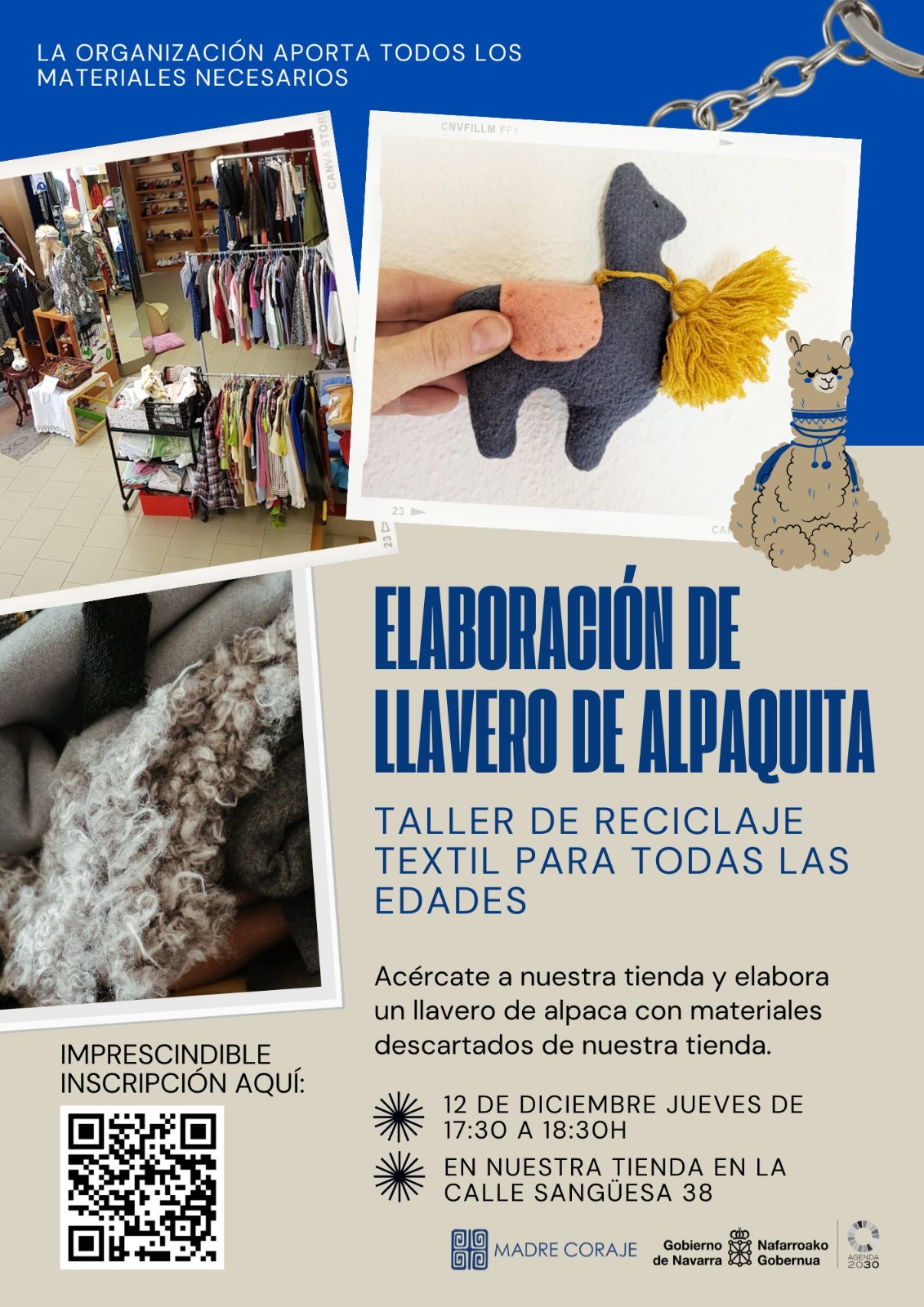 Organizamos el próximo jueves 12 de diciembre a las 17:30h en nuestra tienda de la calle Sangüesa 38 de La Milagrosa, en Pamplona, un taller de reciclaje textil dirigido a personas de todas las edades. La actividad, para la que hay que inscribirse y que tiene aforo limitado, se centrará en la elaboración de llaveros de alpaca con materiales descartados de la tienda de Madre Coraje. La Fundación aporta todos los materiales necesarios para la puesta en marcha de este taller. “El objetivo de la sesión es que las personas participantes pierdan el miedo a la costura y a hacer sus propios arreglos. Mostrar una alternativa sencilla con la que disfrutar y dar rienda suelta a la imaginación, y por supuesto evitar el residuo en el que se convertirían esas prendas ya en desuso pero que ahora nos sirven de materia prima”, explica Isabel Alfaro, técnica de Madre Coraje Navarra. Esta cita se enmarca dentro de las actividades organizadas en torno al proyecto de la Fundación Madre Coraje ‘El viaje de tu camiseta 2.0’ financiado por el Gobierno de Navarra, cuyo objetivo es concienciar sobre el impacto económico, ambiental y social que tiene la moda rápida o fast fashion.