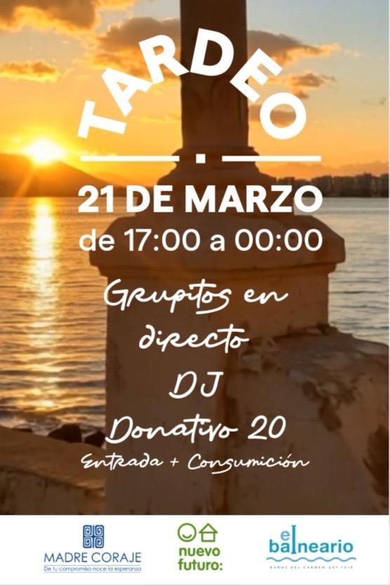 ¡Tardeo solidario en el Balneario de Málaga! El 21 de marzo te esperamos en un lugar espectacular para disfrutar del mejor tardeo con música en directo, buen ambiente y un atardecer inolvidable. Colabora con Madre Coraje y Nuevo Futuro → https://entradium.com/events/el-tardeo-solidario-que-abre-la-primavera-se-celebra-en-el-balnerario-a-beneficio-de-la-fundacion-madre-coraje-y-asociacion-nuevo-futuro. No te quedes sin la tuya ¡Nos vemos en el Balneario!